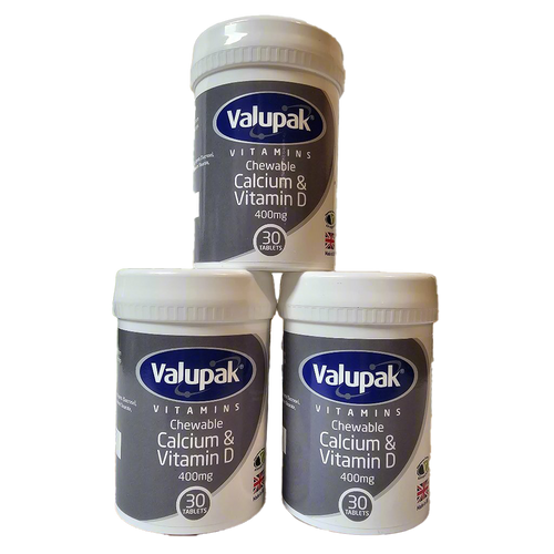 Valupak Chewable Calcium With Vitamin D 400mg 6 x 30 Tablets